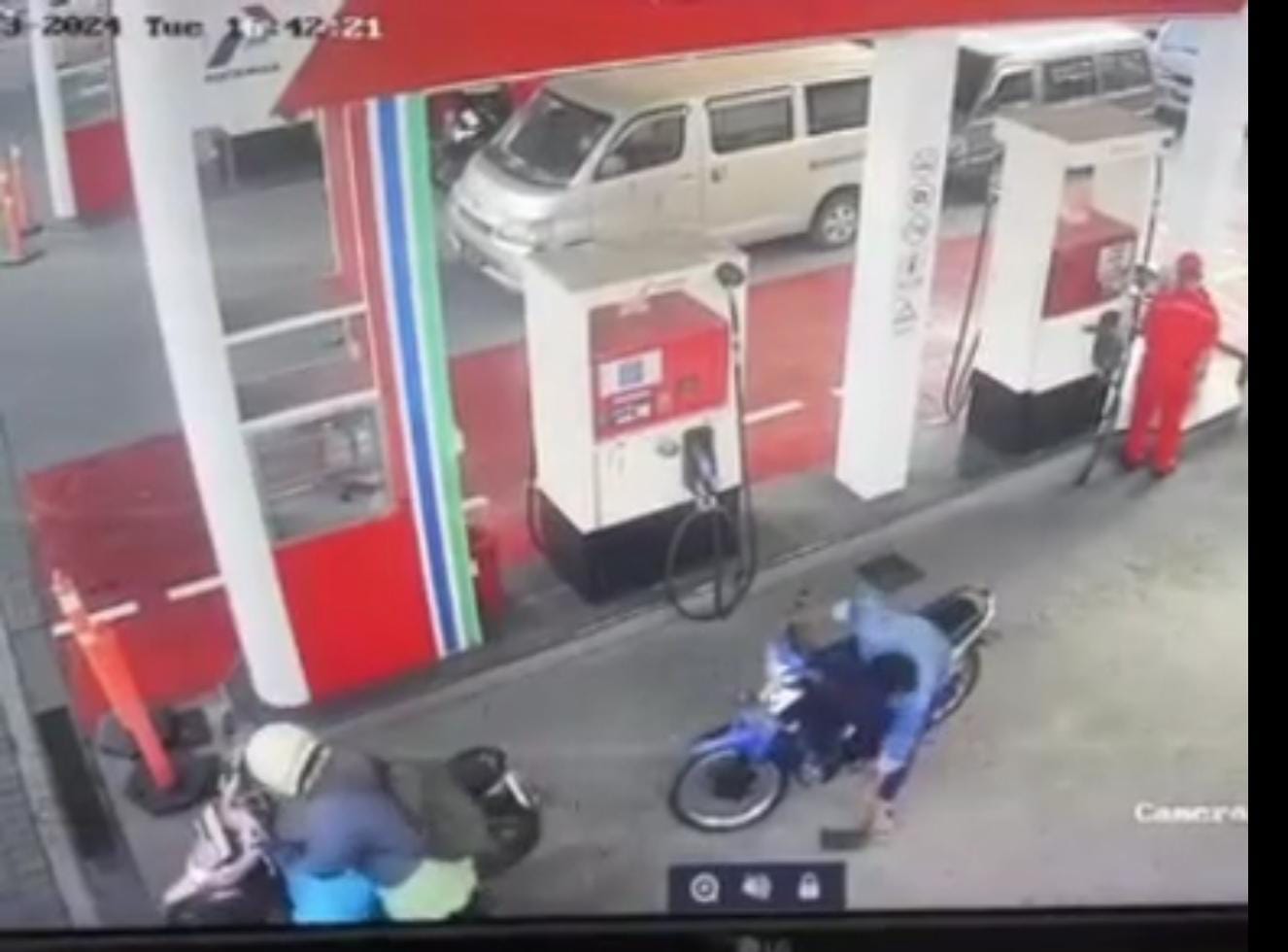Peristiwa tersebut terekam jelas oleh kamera pengawas SPBU. Dalam video yang beredar luas itu terlihat Imasdeka yang baru saja selesai mengisi bensin berusaha memasukkan dompetnya ke dalam tas. Namun, nahas dompet tersebut justru terjatuh dan tidak masuk ke dalam tas.