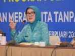 Wabup Gresik Aminatun Habibah saat menyambut kepulangan jemaah haji. (Foto: Ist)